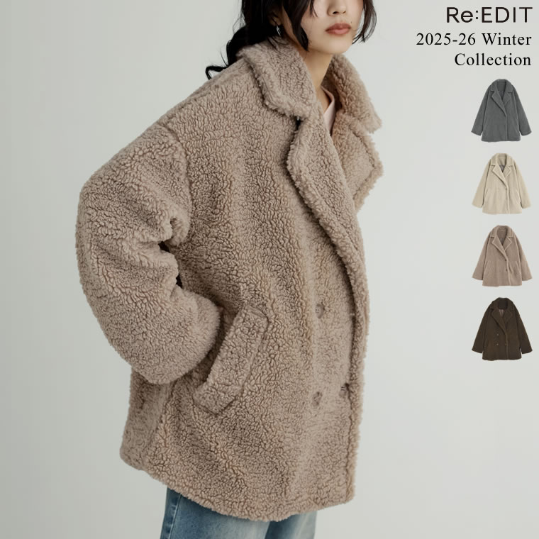 ふんわりと柔らかなボア素材を使用しながらも、ダブル仕様にすることでカジュアルになりすぎず、大人が着こなしやすいクラシカルなデザインに。