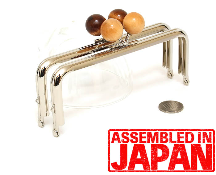 3131【格安A〜B品/木玉2色】がま口 口金 15cm 木製あめ玉付き シルバー 角型 差し込みタイプ 手芸/パーツ/金具 がまぐち/ガマグチ/ガマ口/金具