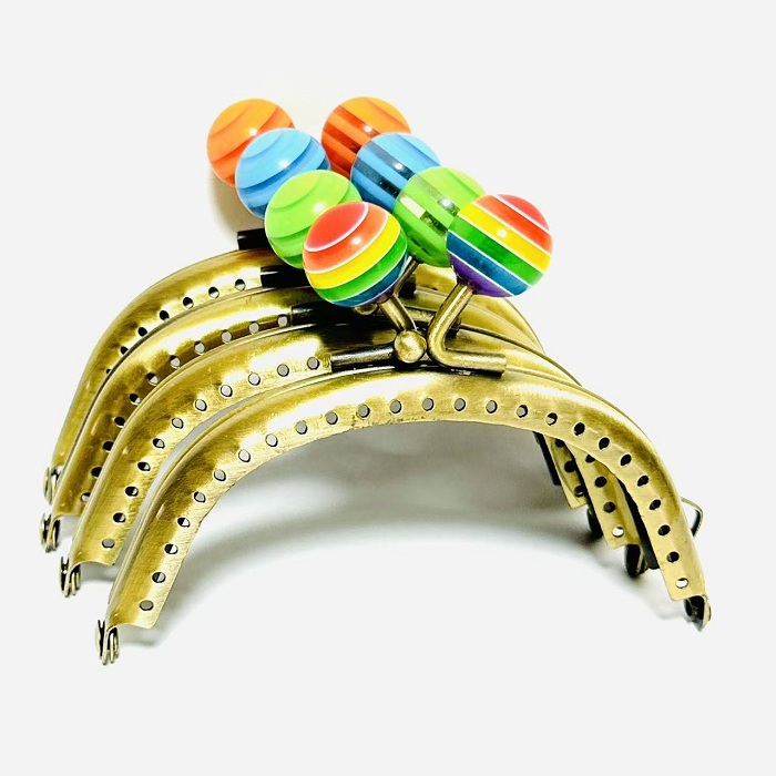 3933【格安/玉付き口金】がま口 口金 9.5cm クリアボーダー玉 くし型 アンティークゴールド 縫い付けタイプ 手芸/金具/パーツ/あめ玉