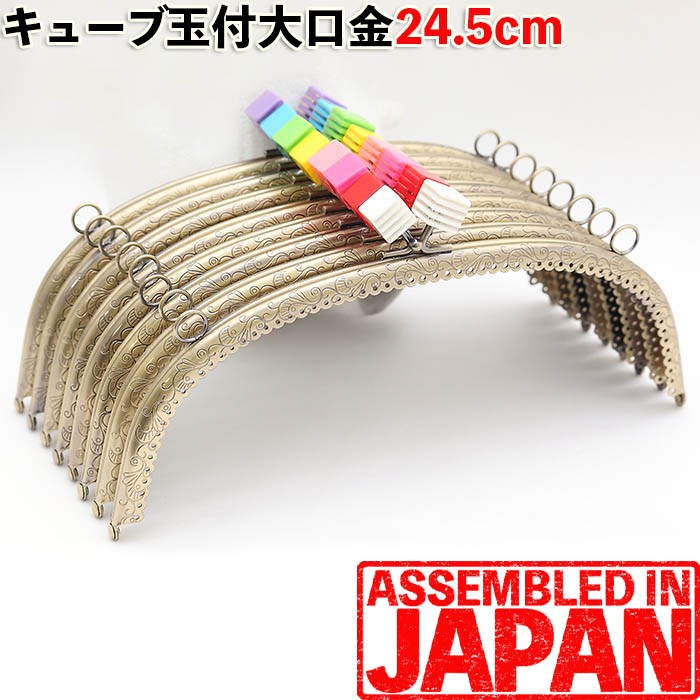 145【大きめキューブ玉】がま口 口金 25cm(内径24.5cm) あめ玉 くし型 アンティークゴールド 縫い付けタイプ 手芸/パーツ/ハンドメイド/手作り