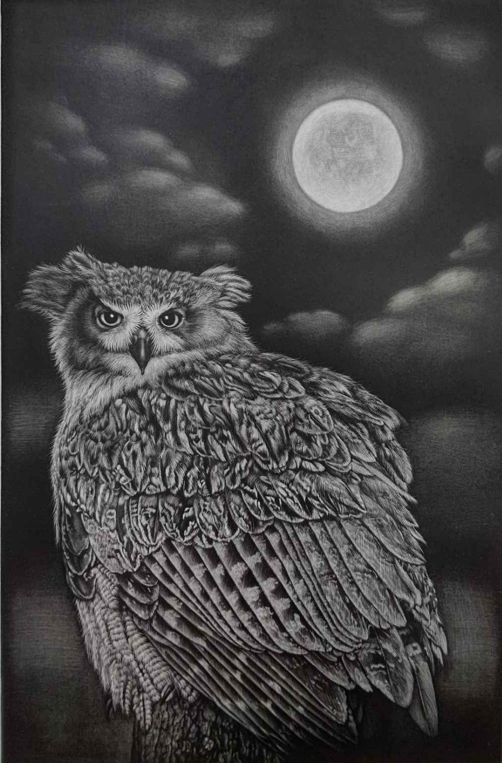 フランスでマニエール・ノワール(黒の技法)と言われるメゾチント(銅版画)技法で自画・自刻・自摺により作品を制作しております。全国有名百貨店画廊(ギャラリー)にて個展を開催し、海外でも活躍している作家です。