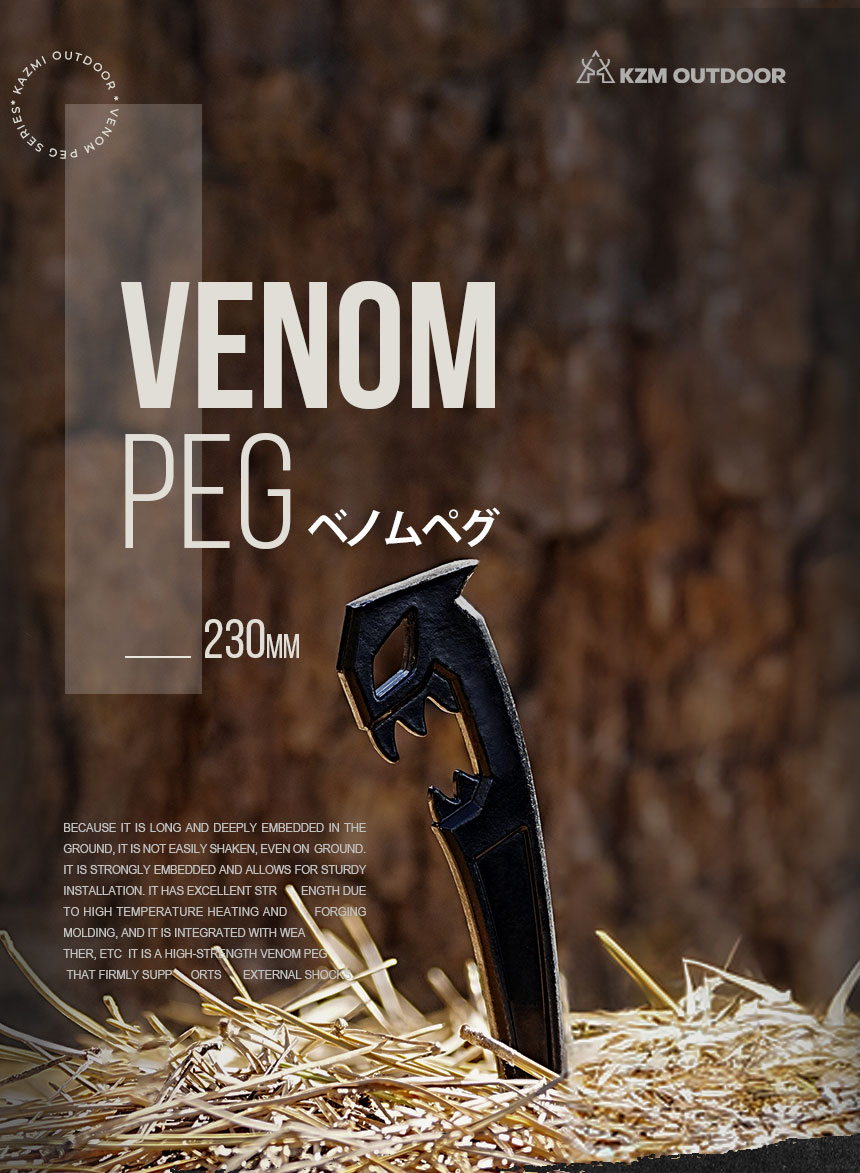 KZM カズミ ベノムペグ 230mm 23cm アウトドア 軽量 おしゃれ キャンプ用品 キャンプ製品 かっこいい ヴェノム ベノム 杭 ペグ抜き ペグ テント 設営 タープ