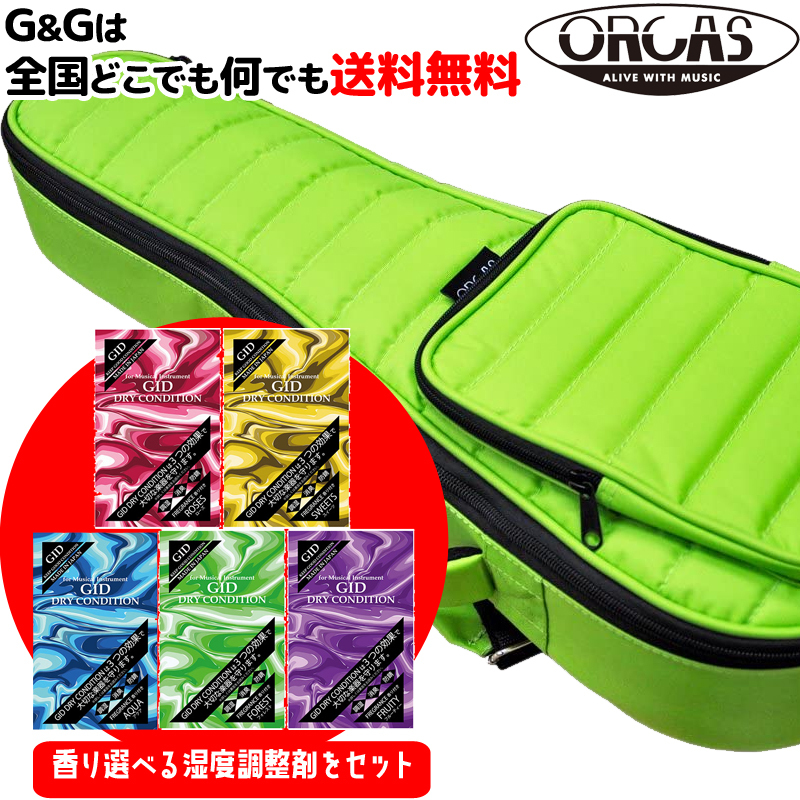 (弦楽器用湿度調整剤プレゼント♪)ORCAS(オルカス) 超軽量(約750g)モコモコ ソプラノウクレレ用ギグバッグ(ライム) OUGC-1(LIME GREEN) ウクレレケース