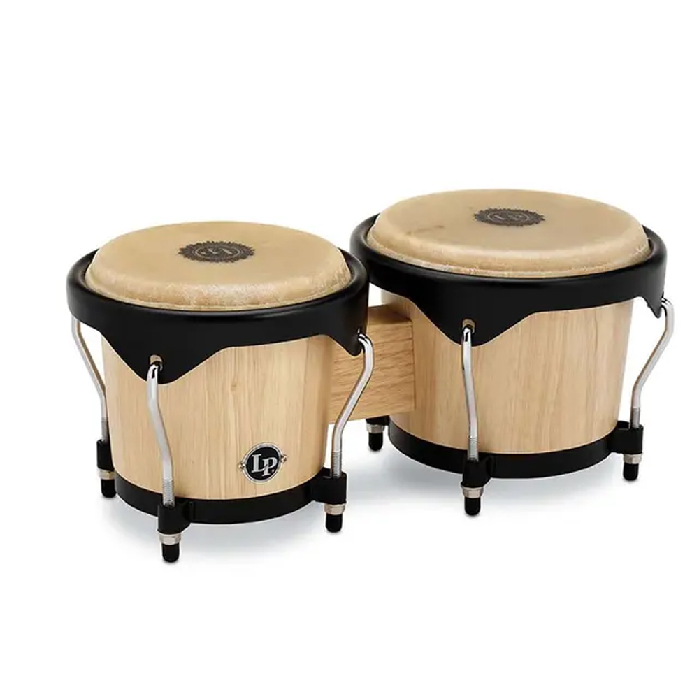 Siam Oak シェルのウッドボンゴです。黒のパウダーコーティングのハードウェア、9/32″ラグを使用。