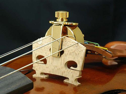 (*1)弦楽器(バイオリン族)用の消音器具は大きく分けて弱音器(ミュート)と消音器(サイレンサー)に分けられます。消音器は文字通り音量を大きく下げることを目的として使用します。それに対し、弱音器は主に音量の調整のため(オーケストラの中で音量のバランスを取る必要があるときなど)に使用します。