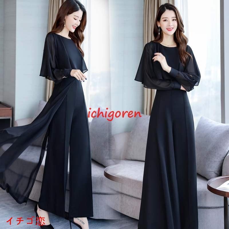 かっこいいパンツドレス 結婚式 お呼ばれ ドレス パンツ 黒 韓国 パーティードレス パンツドレス セパレート パンツスタイル セットアップ レディース フォーマル シフォン パンツスーツ レディース ワイドパンツ 上品 大きいサイズ 3l 結婚式 服装 女性 20代 30代 40代 ブラック ベージュ