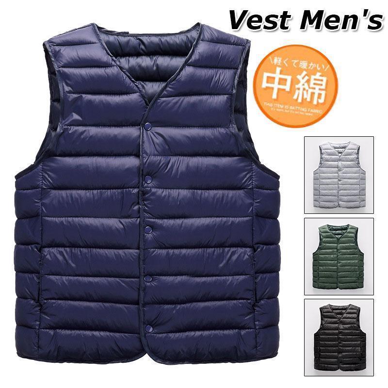 ダウン メンズ 中綿 インナー ブルゾン アウター あったか 防寒着 前開き ス おしゃれ ビジネス 無地 冬服 袖無し
