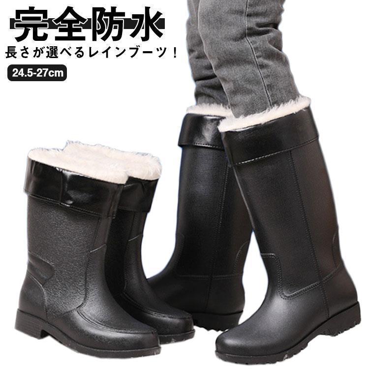 防寒長靴 メンズ 裏起毛 暖か レインブーツ 防寒 長靴 雪かき ガーデニング 裏ボア取り外し可能 レインシューズ 冬 ロング丈 ブーツ 完全防水 長