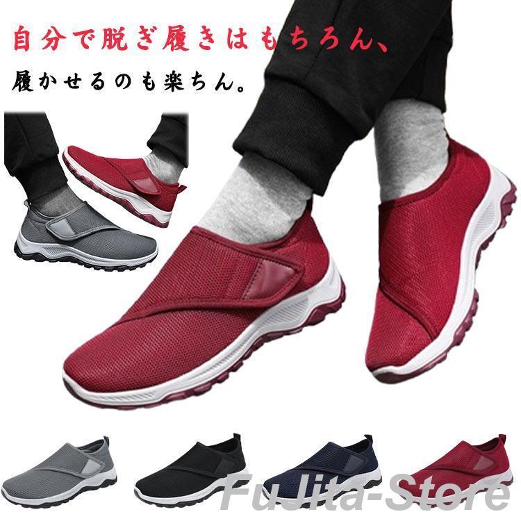 スニーカー 介護靴 マジックテープ 介護シューズ リハビリ シューズ 軽い 介護シューズ スリッポン メンズ レディース 幅広 甲高 介護 軽量 ウォ