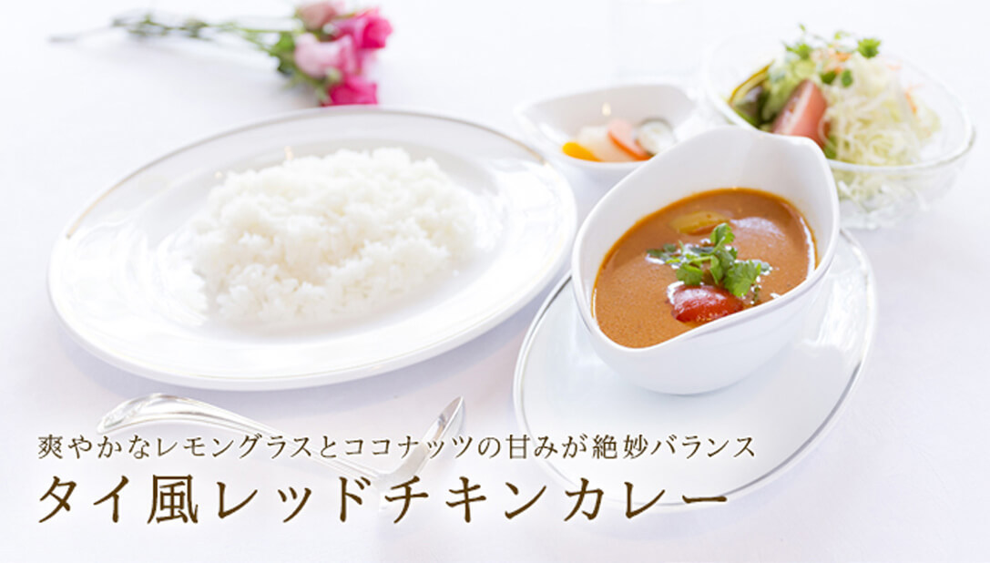 鶏がらでじっくり出汁を取り、コクと旨味を凝縮させています、レモングラスをはじめ数種類のスパイスを配合、本場の味を再現しています、辛さの中にマイルドな甘みを生み出すのは、タイ産ココナッツミルクです