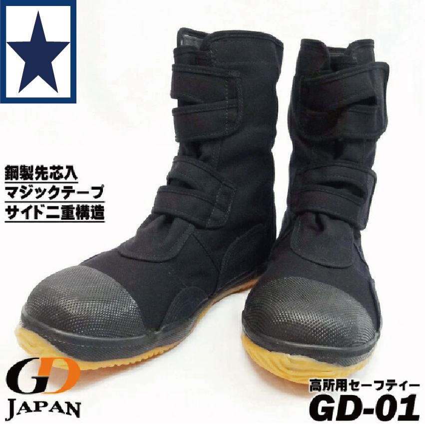 ・マジックテープ仕様の高所作業用安全靴。脱ぎ履きしやすく、フィット感の微調整も可能です。