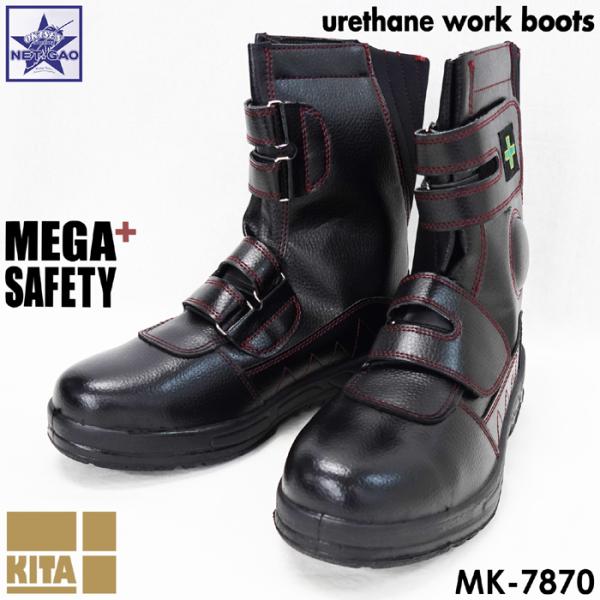 安全靴 MK-7870 ウレタンワークブーツ 喜多 JIS S級相当 24.5〜27cm 28cm メンズ マジックテープ ブラック マジック ブーツタイプ ブーツ 土木工事 建築現場 軽作業 ライダー ブーツ ミリタリーブーツ サバイバルゲーム サバゲー