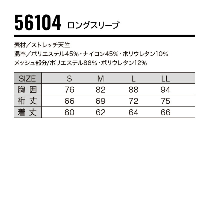 [ 56104 ロングスリーブ Jawin 自重堂 ] S~LL Jichodo ジャウィン インナー アンダーウェア 長袖 メッシュ 接触 冷感 清涼 ドライタッチ ストレッチ 消臭 抗菌 春 夏 機能性 作業着 作業服 工場 大工 建設 製造 運送 倉庫 農業 林業 スポーツ アウトドア キャンプ メンズ