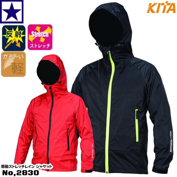 喜多 NO.2830 感動ストレッチレインジャケット S〜4L 2830 No,2830 キタ kita 上着 レインウェア ジャケット ズボン アウトドア 通勤 通学 自転車 バイク オートバイ 釣り 登山 ゴルフ ウォーキング 雨合羽 雨具 レインコート レインスーツ おしゃれ メンズ レディース