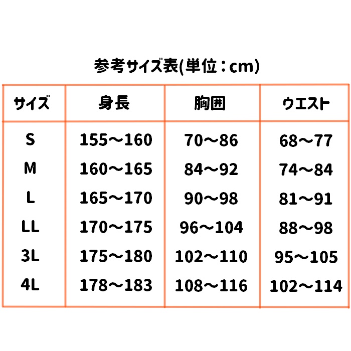 詳しくはサイズ表をご確認ください。