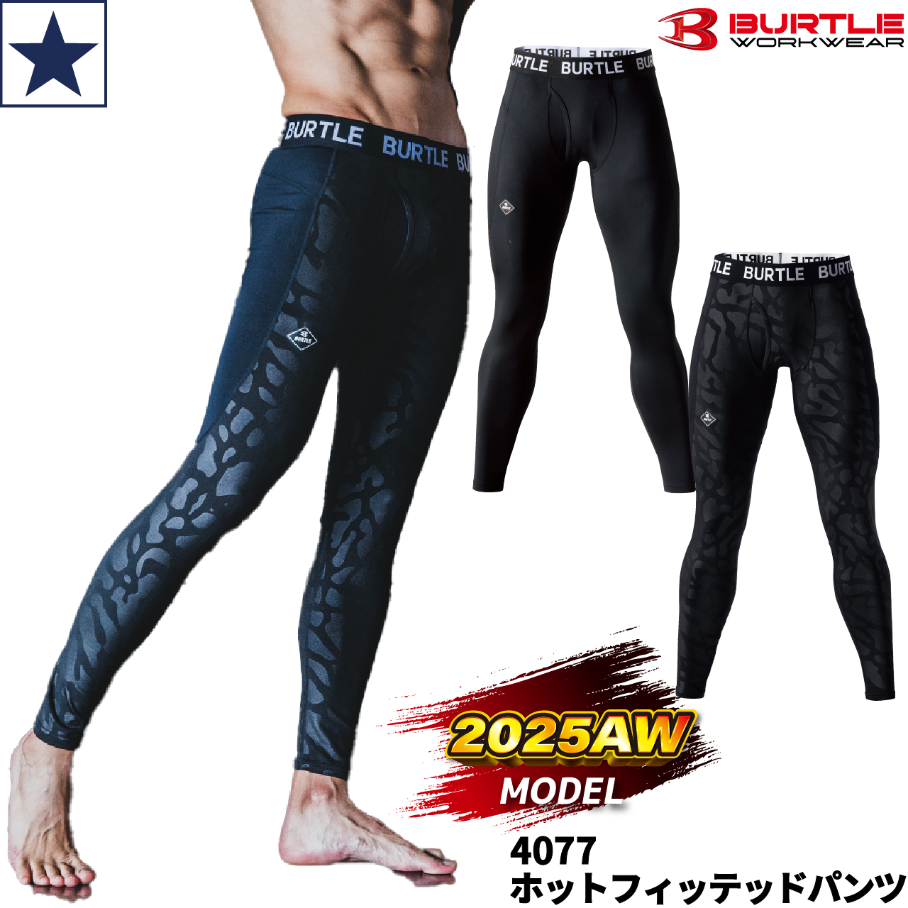 【即日出荷】【1点送料300円】2025年新作 BURTLE バートル 4077 ホットフィッテッド ユニセックス インナー 裏起毛 ストレッチ 吸汗速乾 制電 消臭 冬用 防寒 コンプレッション