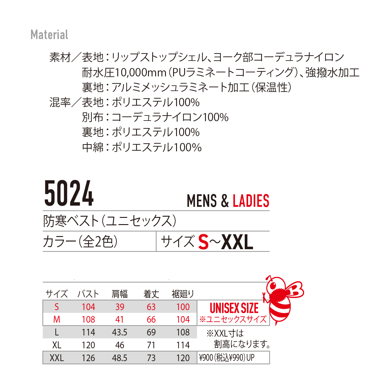 表地・裏地・中綿:ポリエステル100%
