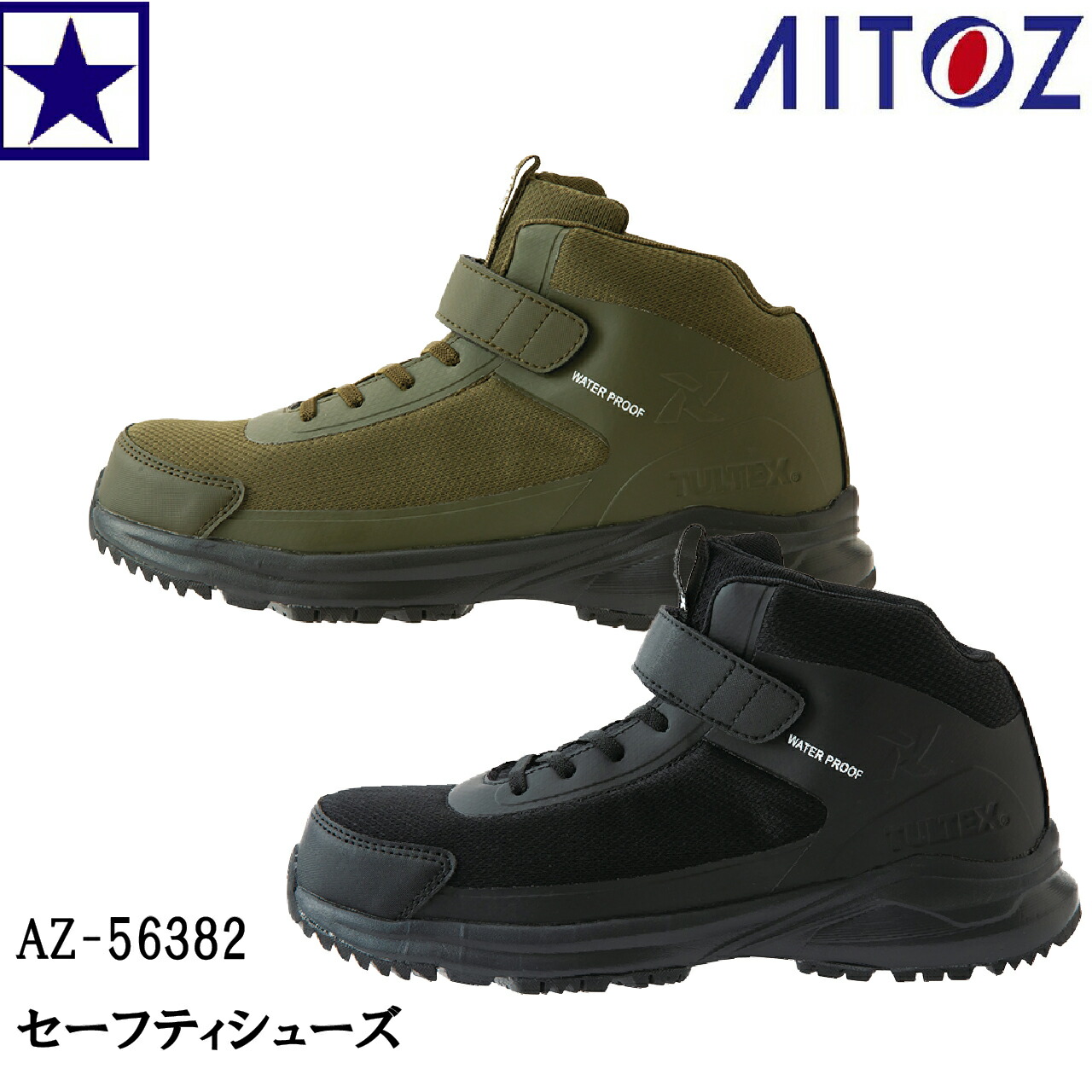 安全靴 アイトス AZ-56382 防水セーフティシューズ TULTEX タルテックス ミドルカット作業靴 防水仕様 ゴム紐 軽量 靴 アウトドア 運動 作業 合成皮革 革 皮 メンズ レディース 保護 シューズ DIY