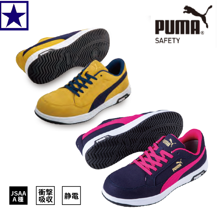 ■スニーカー感覚で履けるネイビーのPUMA安全靴を探している方に。3E相当のゆったり設計で、男女問わずフィットしやすいローカットモデル。