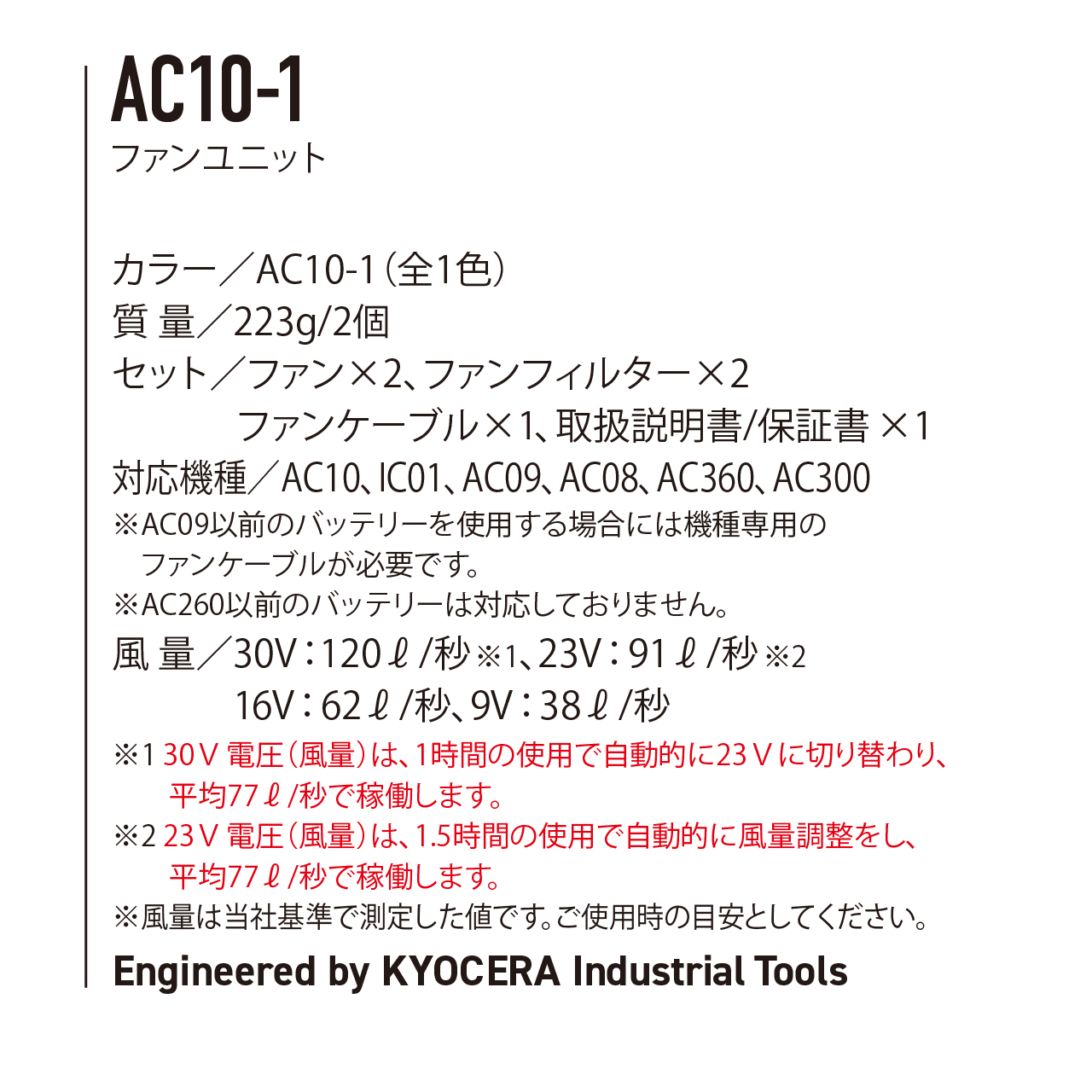 ※AC10、IC10、AC09、AC08、AC360、AC300、ファンの専用品です。