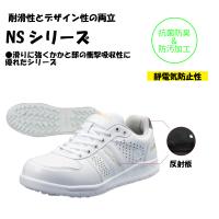 静電気帯電防止性、かかと部の衝撃エネルギー吸収性、耐滑性