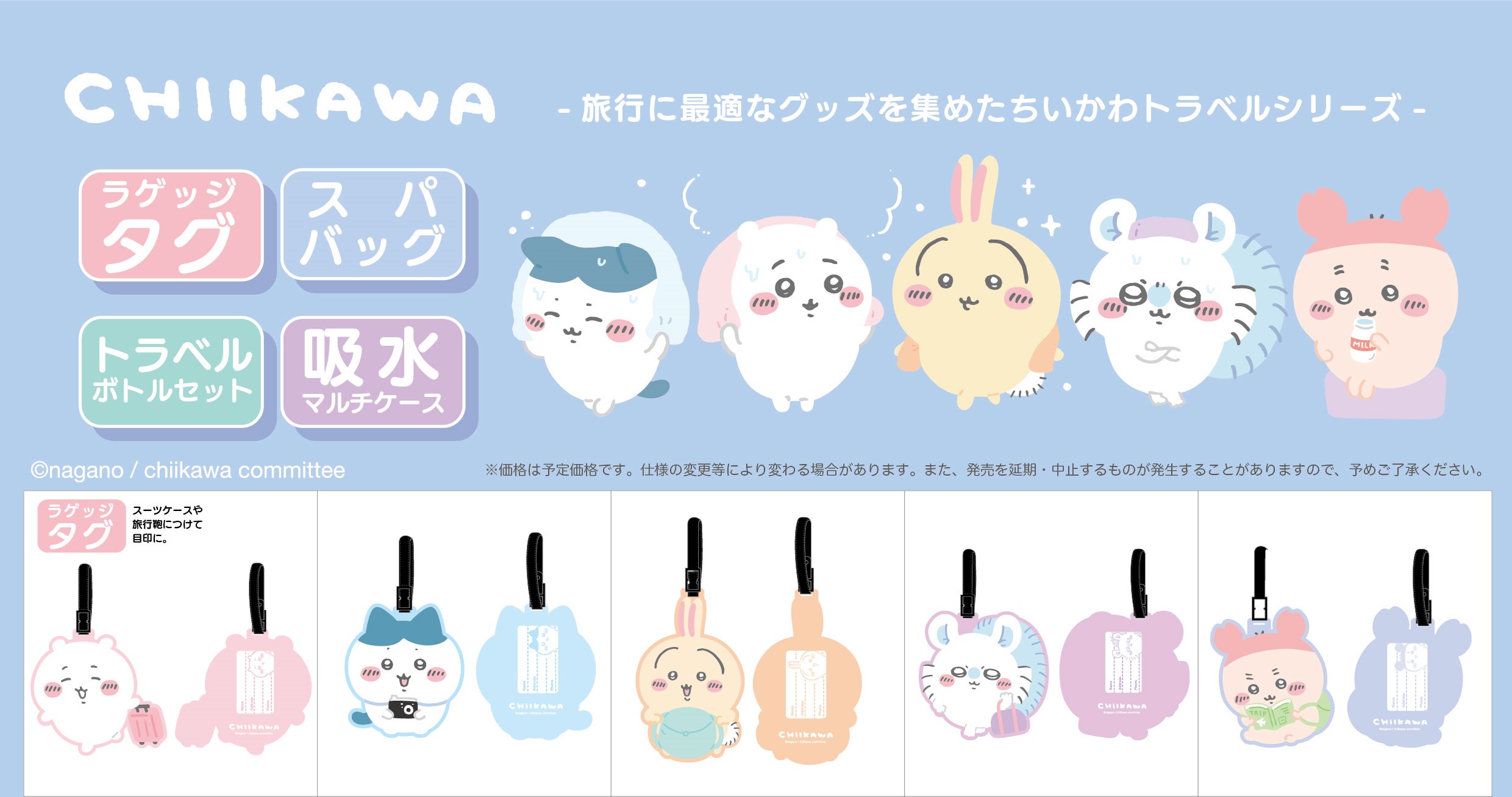 ちいかわ トラベルシリーズ ラゲッジタグ ちいかわ / ハチワレ / うさぎ / モモンガ / 古本屋 キャリーケース 名前タグ ネームタグ 旅行 旅行鞄 目印