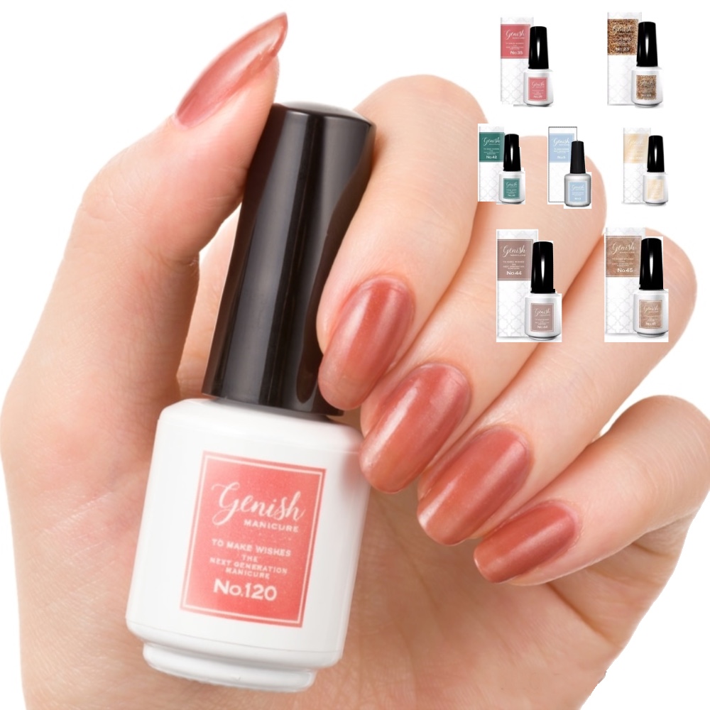 ジーニッシュマニキュアは、ジェルネイル成分(光硬化樹脂)を独自のフォーミュラで配合し、60秒の速乾とサロン級のツヤ感、密着・長持ちを実現した進化形のマニキュアです。