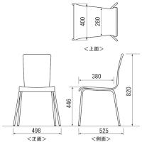 | 材質 | ●背・座:合板(塗装仕上げ) ●脚部:スチール(クロームメッキ仕上げ) ●床設置面クッション材:PVC |