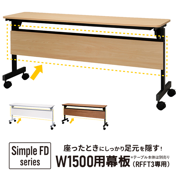| 特徴 | シンプルフォールディングテーブルIII専用の幕板(W1500用)です。足元をしっかり隠すことができます。別売のテーブル本体の前に設置してご利用ください。 |