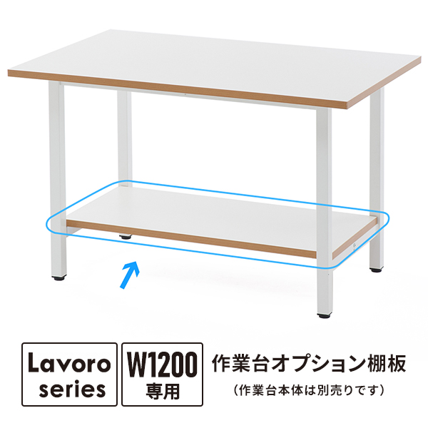 | 特徴 | 作業台W1200専用のオプション棚板。天板下の補強フレームに設置し、足元に収納スペースを確保します。 *作業台本体は別売りです。 |