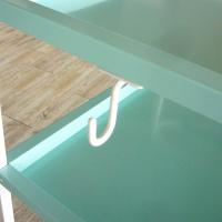 | 特徴 | 医療施設や理美容室で活躍するスチールワゴン。ハンドルとフック(1個)がついています。キャスター4個すべてにストッパーがついています。 *RFWG-STBLのキャスター変更商品です。新キャスターは高さがこれまでの89mmより2mm低いH87mmとなるため、製品の高さが801mmから799mmへと変更になっております。また、外観においてはストッパーの形状とホイールの厚みが若干異なります。 |