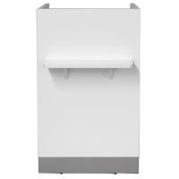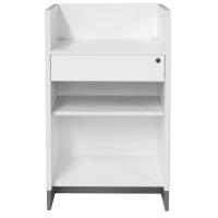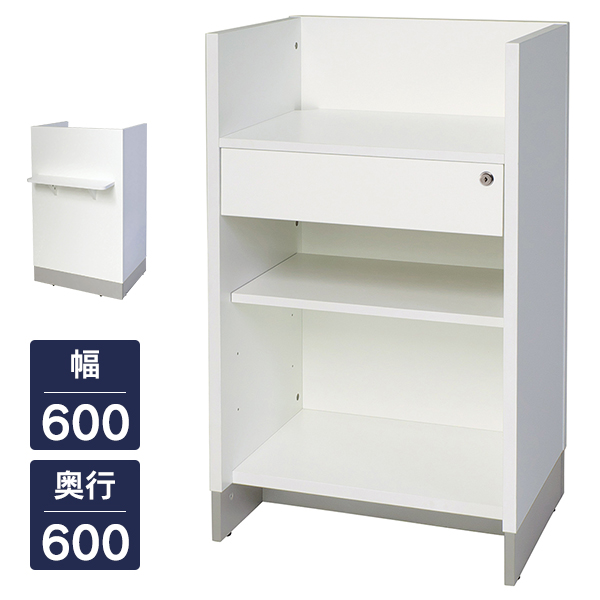| 特徴 | お客様側に荷物置きがついたノルムシリーズのレジカウンター。天板左右に配線用切り欠きあり、天板下は鍵付き引出しで伝票や電卓などを収納できます。収納部には可動棚板1枚付属、112mmピッチ3段階よりお好みの高さでご利用いただけます。巾木付きでつま先が当たりやすい部分を汚れから守ります。単体での使用はもちろん、ノルムシリーズのハイカウンターW900、W1200、コーナー用と組み合わせてご使用いただけます。 |