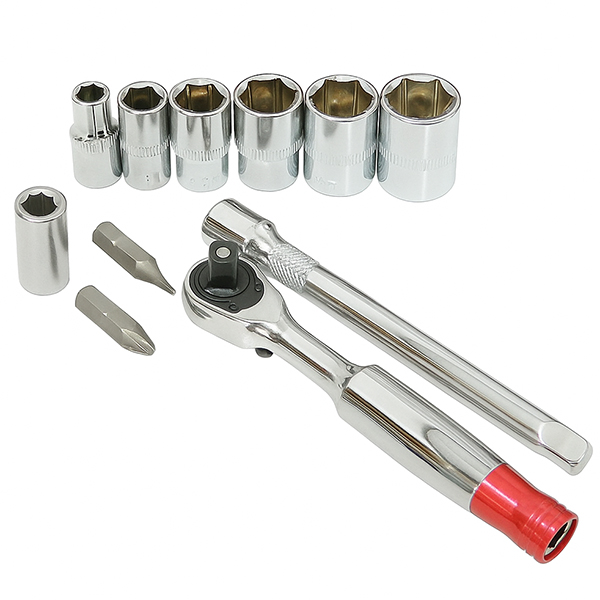 ツーリング携帯用 1/4"ラチェットレンチ ソケット11点セット H072