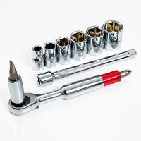 最小サイズの1/4"サイズラチェットレンチとエクステンションバーも付属しています、奥まった場所にも届きます。
