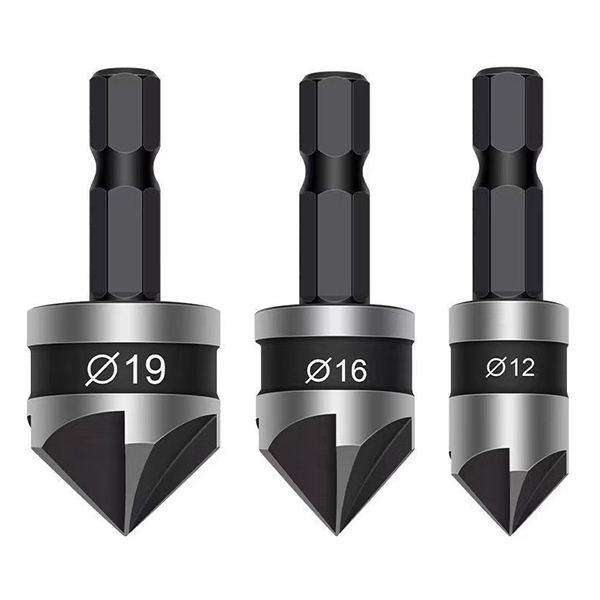 ■予約注文12/26より順次発送■ 面取りカッター 六角軸 90度 5枚刃 3本セット 12 16 19mm 皿取り錐 木工 バリ取り 炭素鋼 T829