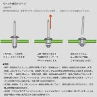 ブラインドリベットはボディー(フランジ)部と、マンドレル(シャフト)部から構成されていて、マンドレル(シャフト)を引き抜くことで、ボディー(フランジ)に変形をあたえて2枚の板を固定することができます。
