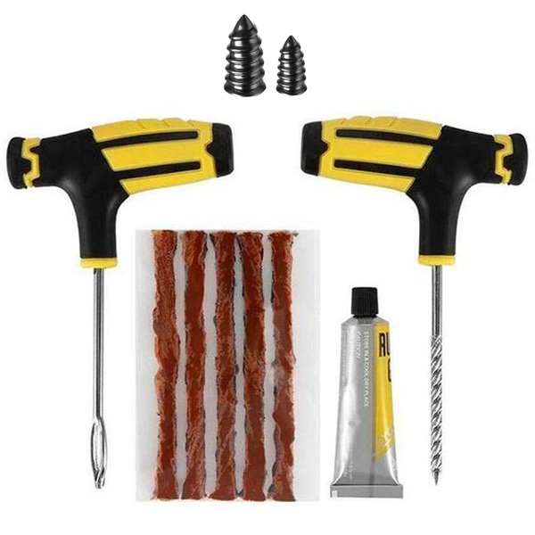 ・通常パンク修理きっと:ツール2本、ラバーセメント1本、パンク修理材×3本(長さ約10cm)