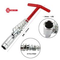 T型ハンドル付きプラグソケットレンチ ユニバーサルタイププラグレンチ 14mm YZG014