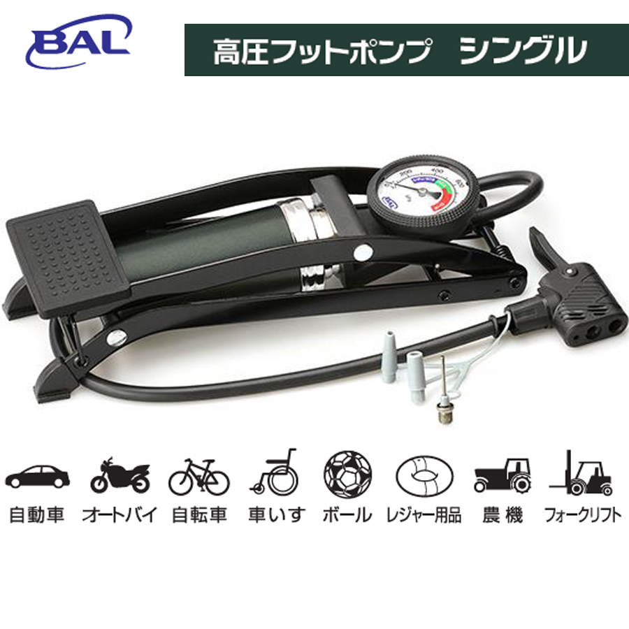 BAL 大橋産業 高圧タンク付き フットポンプ シングル 1926 空気入れ 各種アダプター付 バル No.1926