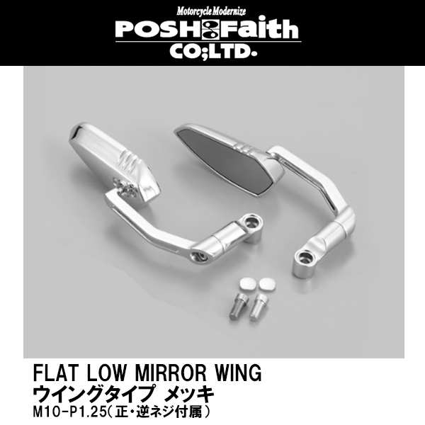 POSH ポッシュ メッキ フラットローミラー ウイングタイプ FLAT LOW MIRROR