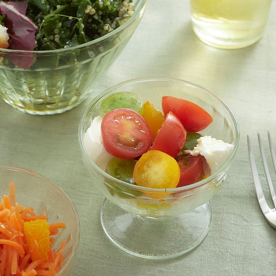 脚付きのガラスの器は食卓を上品に演出してくれます。