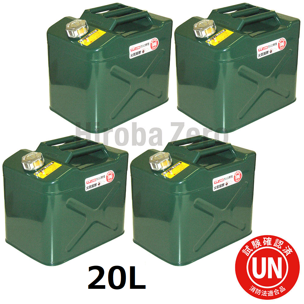 ガレージ・ゼロ ガソリン携行缶 20L GZKK35×4缶 緑 ワイド縦型 UN規格 消防法適合品 携行缶