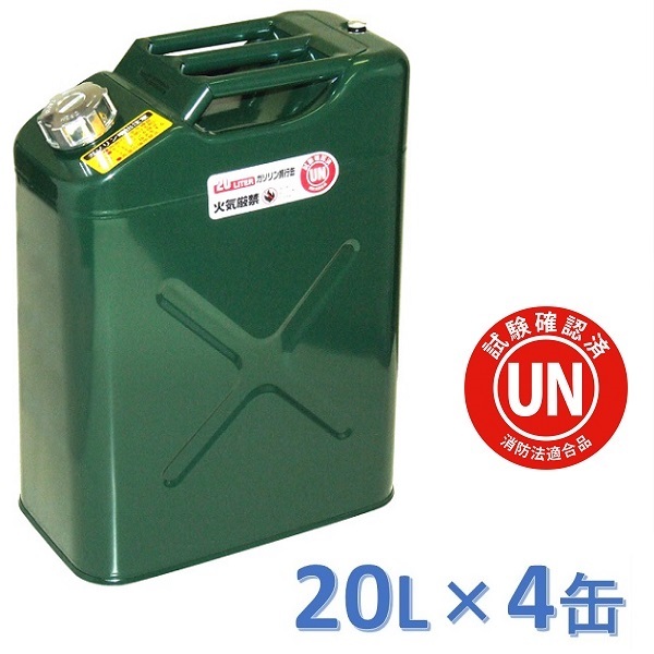 ガレージ・ゼロ ガソリン携行缶 20L GZKK39×4缶 緑 縦型 UN規格 消防法適合品 携行缶