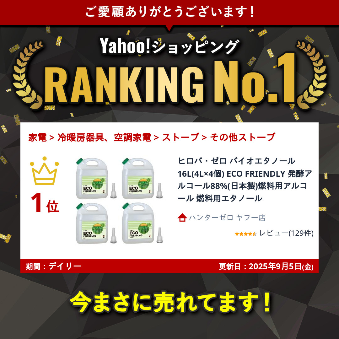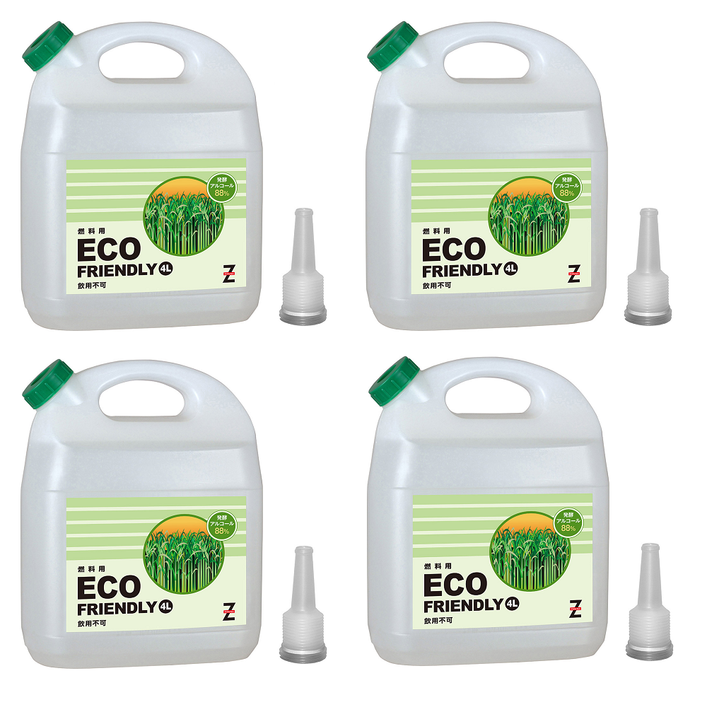 ヒロバ・ゼロ バイオエタノール 16L(4L×4個) ECO FRIENDLY 発酵アルコール88%(日本製)燃料用アルコール 燃料用エタノール
