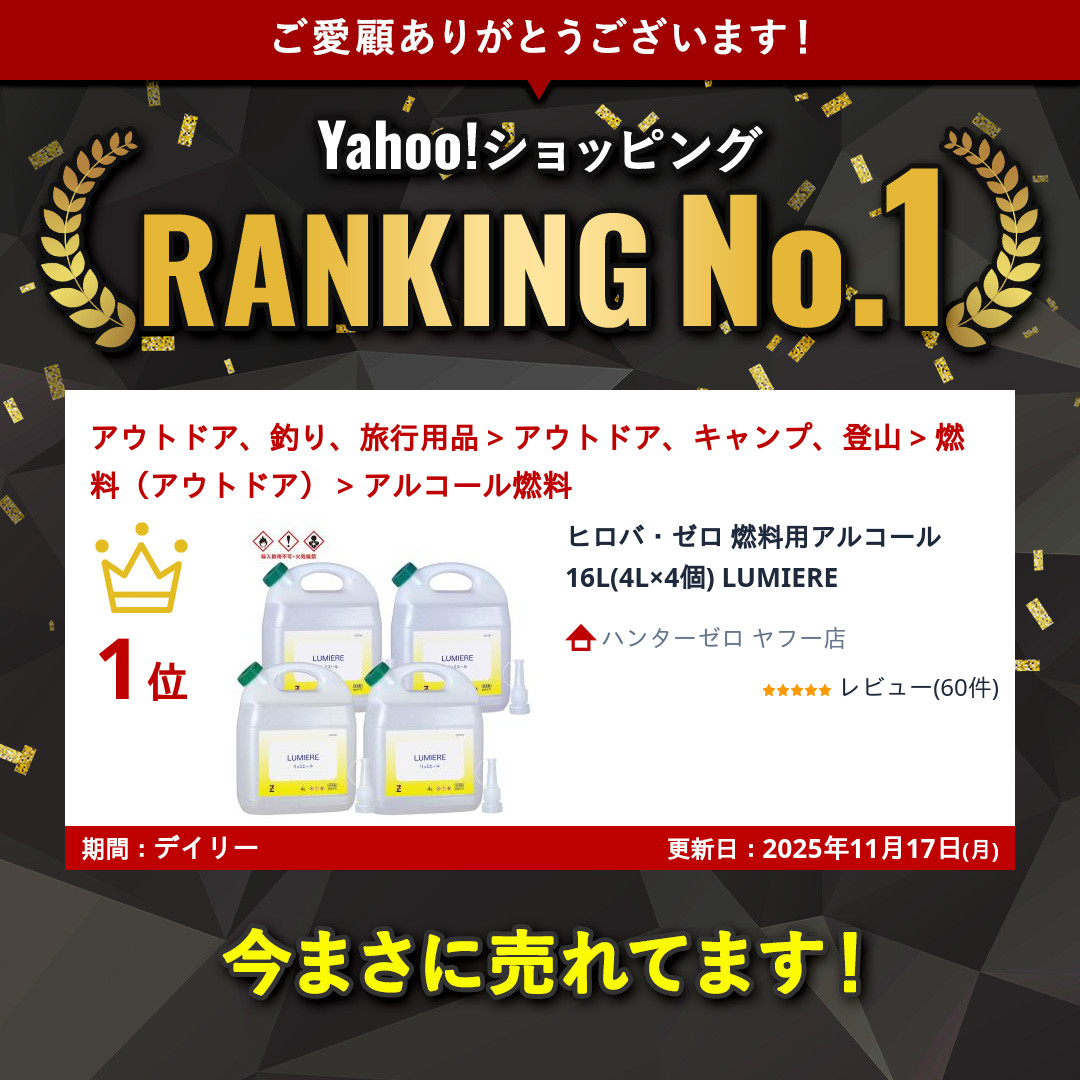 ヒロバ・ゼロ 燃料用アルコール 16L(4L×4個) LUMIERE