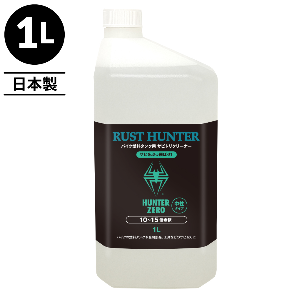 (送料無料)ハンターゼロ バイク燃料タンク用サビ取りクリーナー 1L RUST HUNTER *送料無料(北海道・沖縄・離島除く)