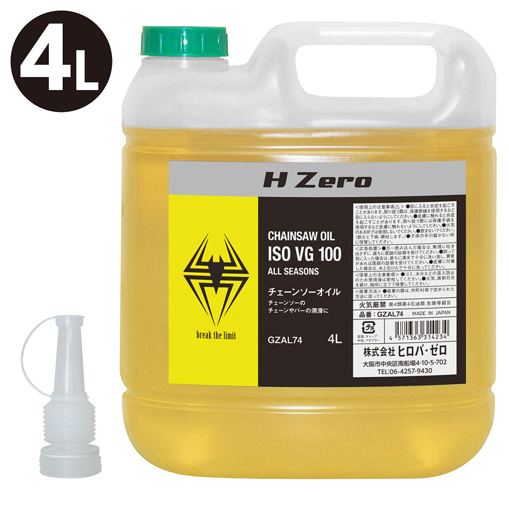 ヒロバ・ゼロ チェーンソーオイル(ISO VG100)4L オールシーズンタイプ/チェンソーオイル