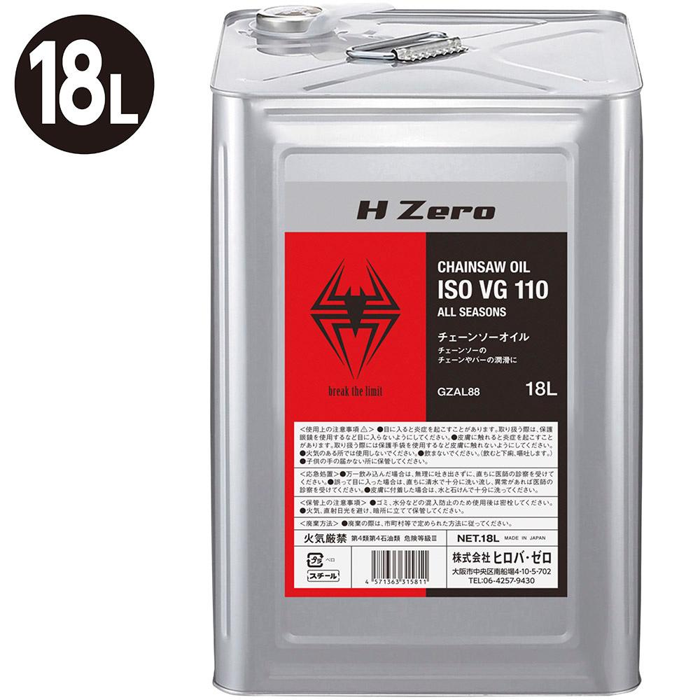 ヒロバ・ゼロ チェーンソーオイル(ISO VG110) 18L オールシーズンタイプ/チェンソーオイル