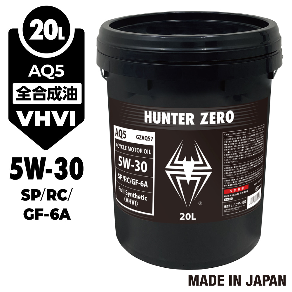 (モニター価格) 車用 モーターオイル 20L/ポリ容器/全合成油[5W-30/SP/GF-6A] VHVI 自動車用エンジンオイル AQ5 ハンターゼロ