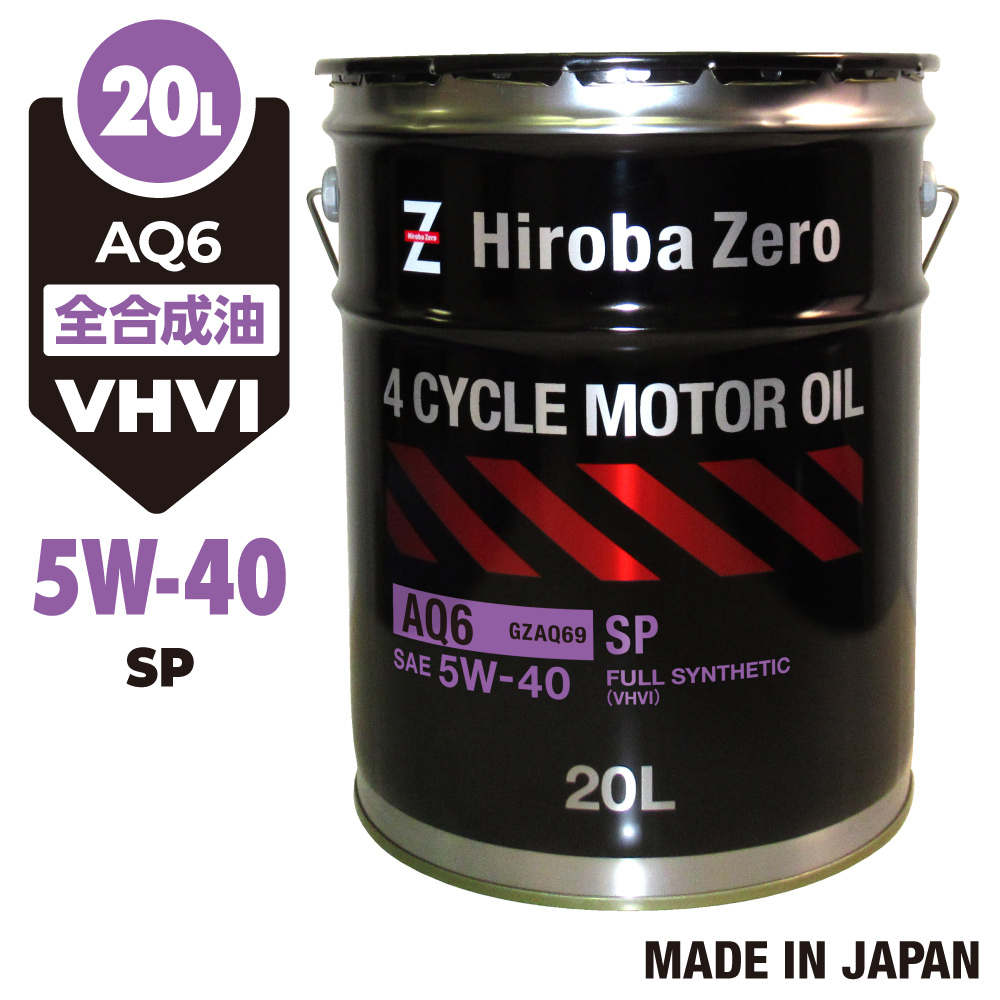 (モニター価格) 車用 モーターオイル 20L 化学合成油/全合成油[5W-40/SP] VHVI 自動車用エンジンオイル AQ6 ヒロバ・ゼロ